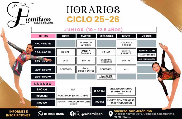 - Presencia en competencias como: Jump, Starpower, Showstopper, TDR, Revolt Intensive, All Dance International, Dance Impulse, Forcé, UPA, entre otras.