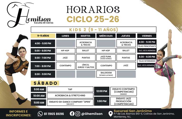- Participación en competencias nacionales e internacionales, obteniendo premios por Mejor Técnica, así como primeros lugares en solos y grupos junto a su staff de maestros 100% profesionales.